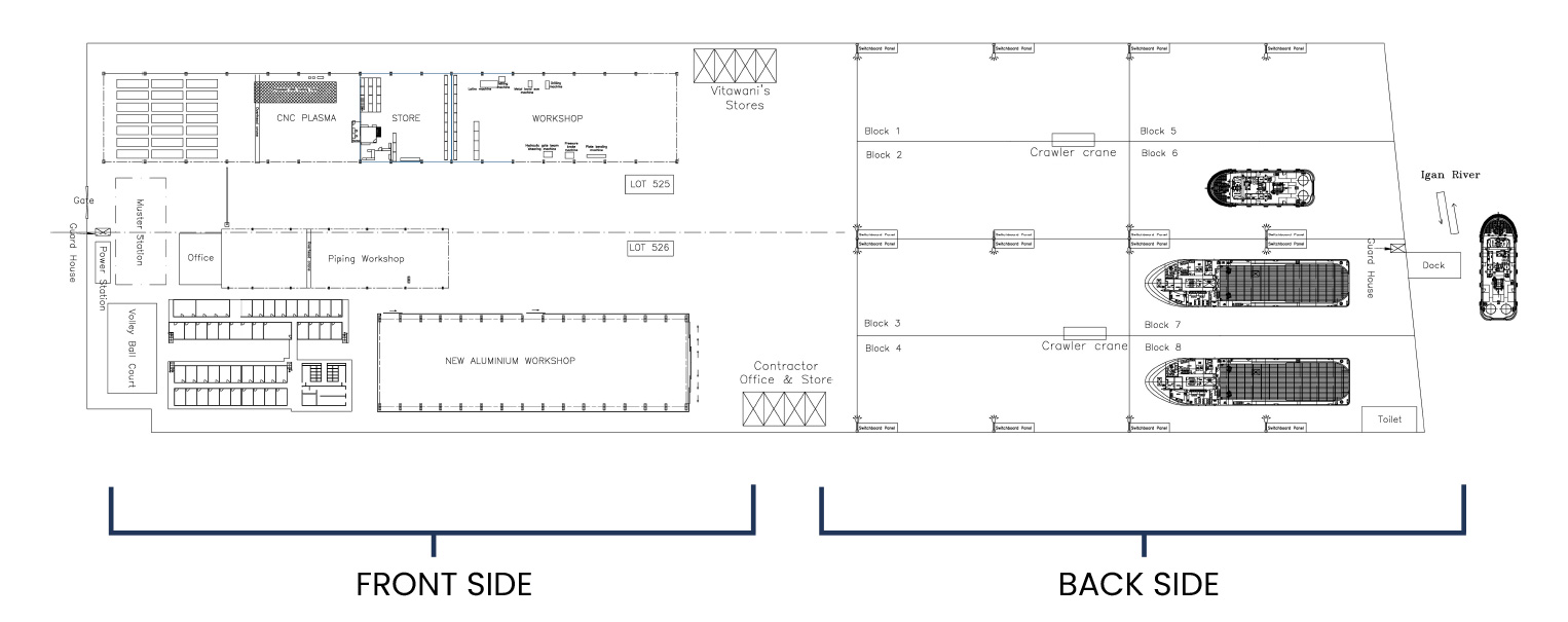 Shipyard LocationOur shipyard is located at Rantau Panjang Industrial Zone of Sibu, Sarawak, Malaysia.